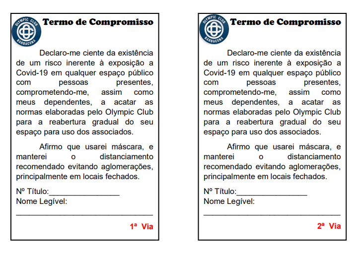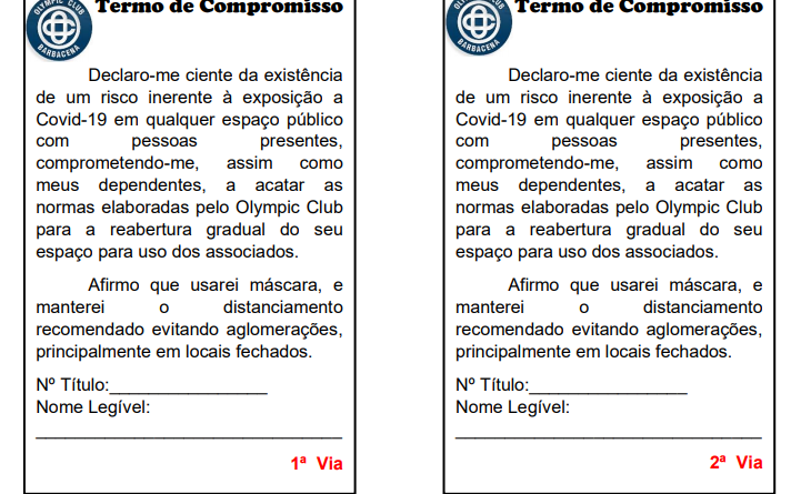 Reforçamos que essa medida consta em nosso protocolo de reabertura, e é indispensável a assinatura e ciência do mesmo para adentrar as dependências do clube.