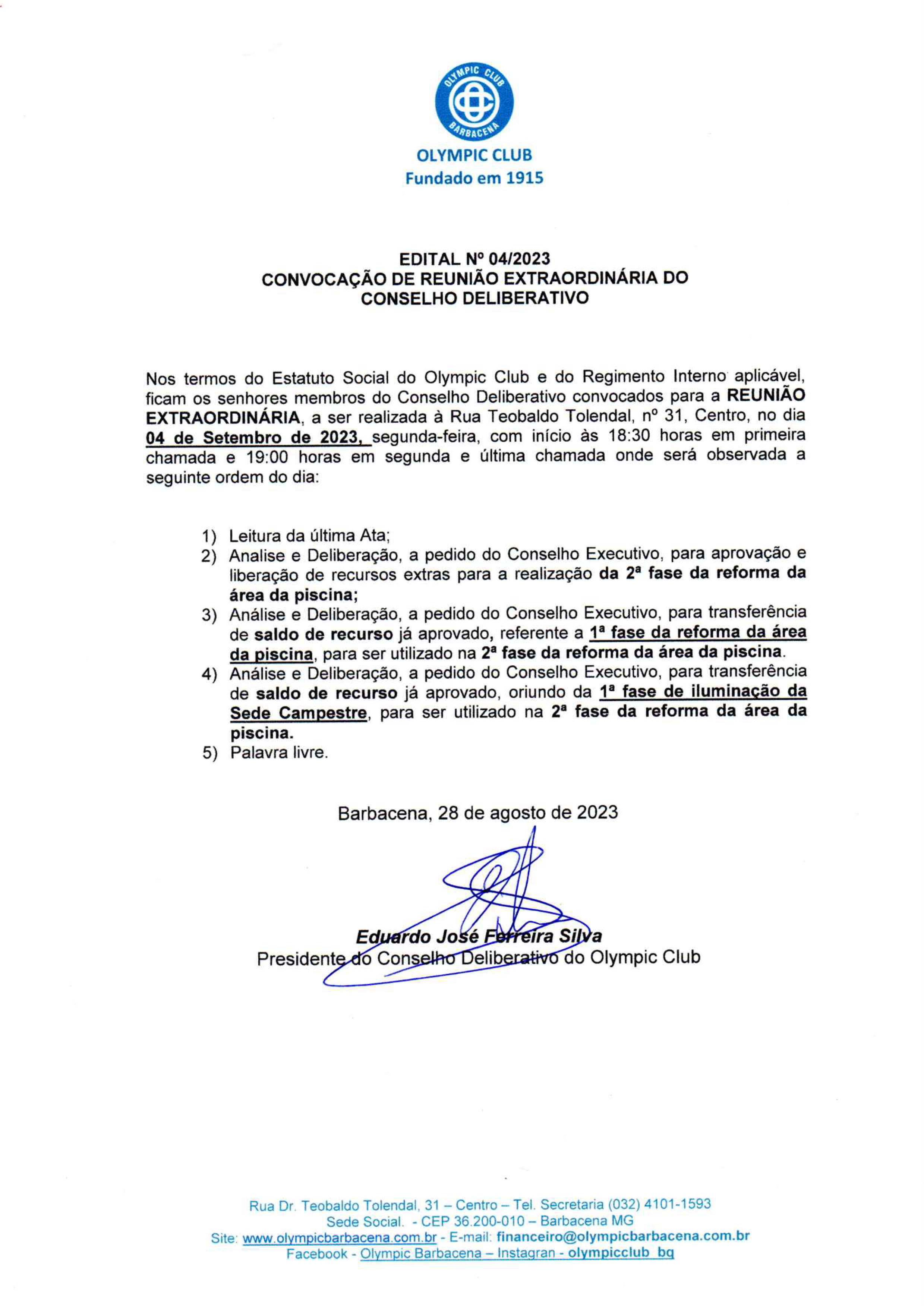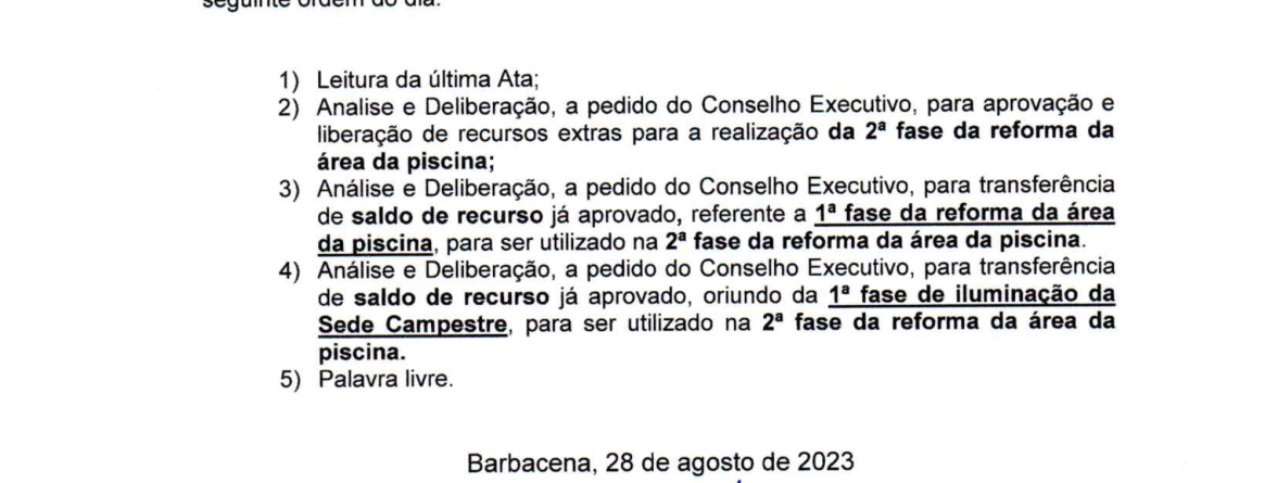 CONVOCAÇÃO: Reunião do Conselho Deliberativo 04/09/2023
